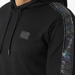 Budget 🧨 Sweat Capuche A Bandes 6LPM44-PJ05Z Noir Réfléchissant Iridescent de EA7 Emporio Armani ⌛