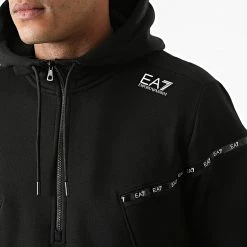 Meilleure affaire 🌟 Sweat Zippé Capuche Femme 3LTM03 Noir Blanc de EA7 Emporio Armani 🔔