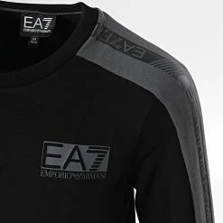 Vente flash 😀 Sweat Crewneck A Bandes Enfant 6LBM62-BJEXZ Noir de EA7 Emporio Armani 👍