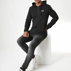 Meilleure affaire 🌟 Sweat Zippé Capuche Femme 3LTM03 Noir Blanc de EA7 Emporio Armani 🔔