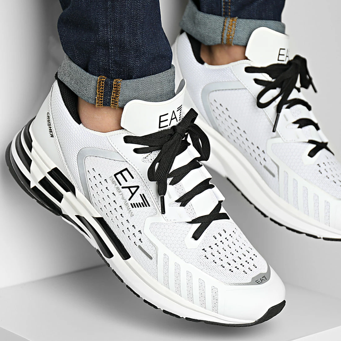• Baskets tendance en mesh et simil cuir avec logo EA7 Emporio Armani appliqué