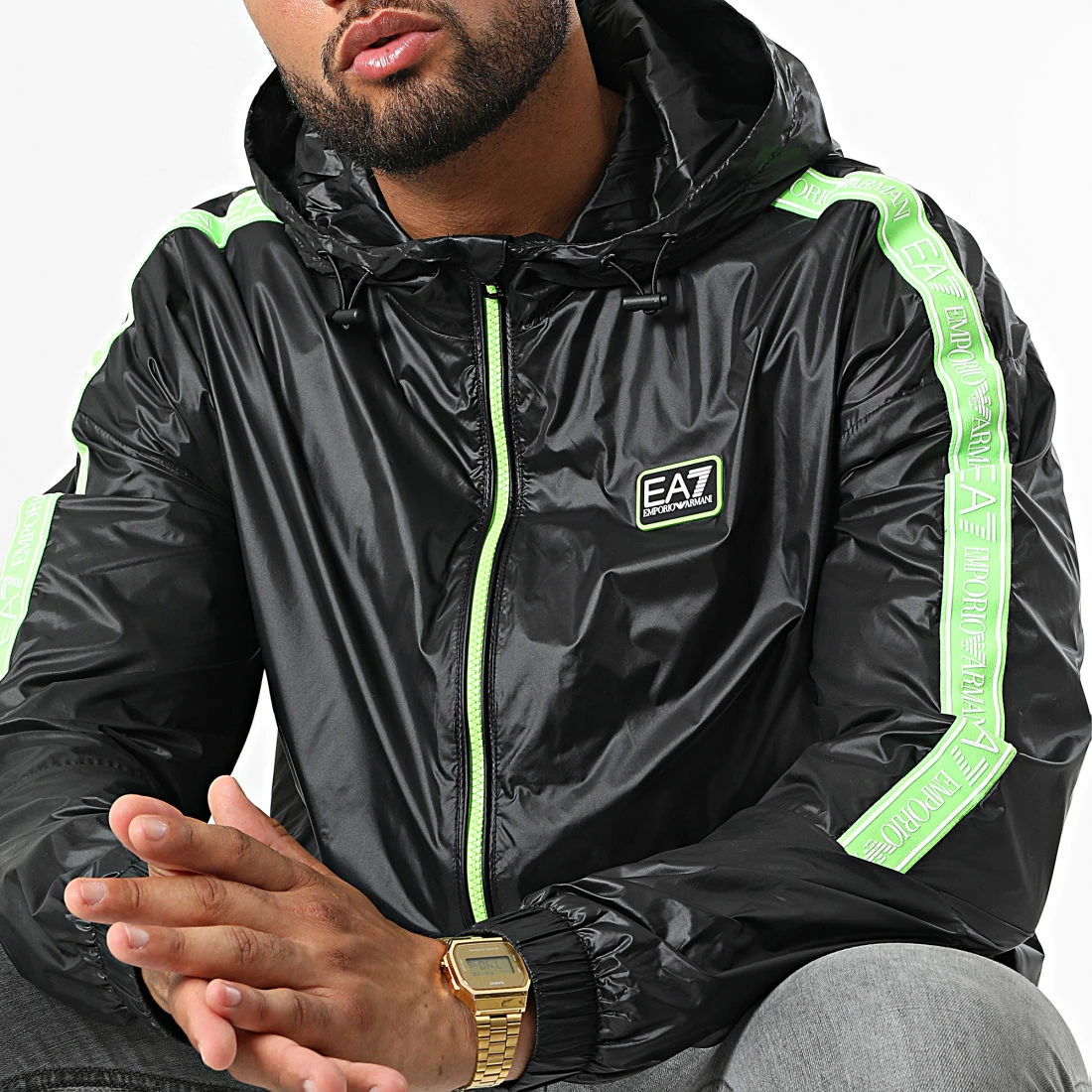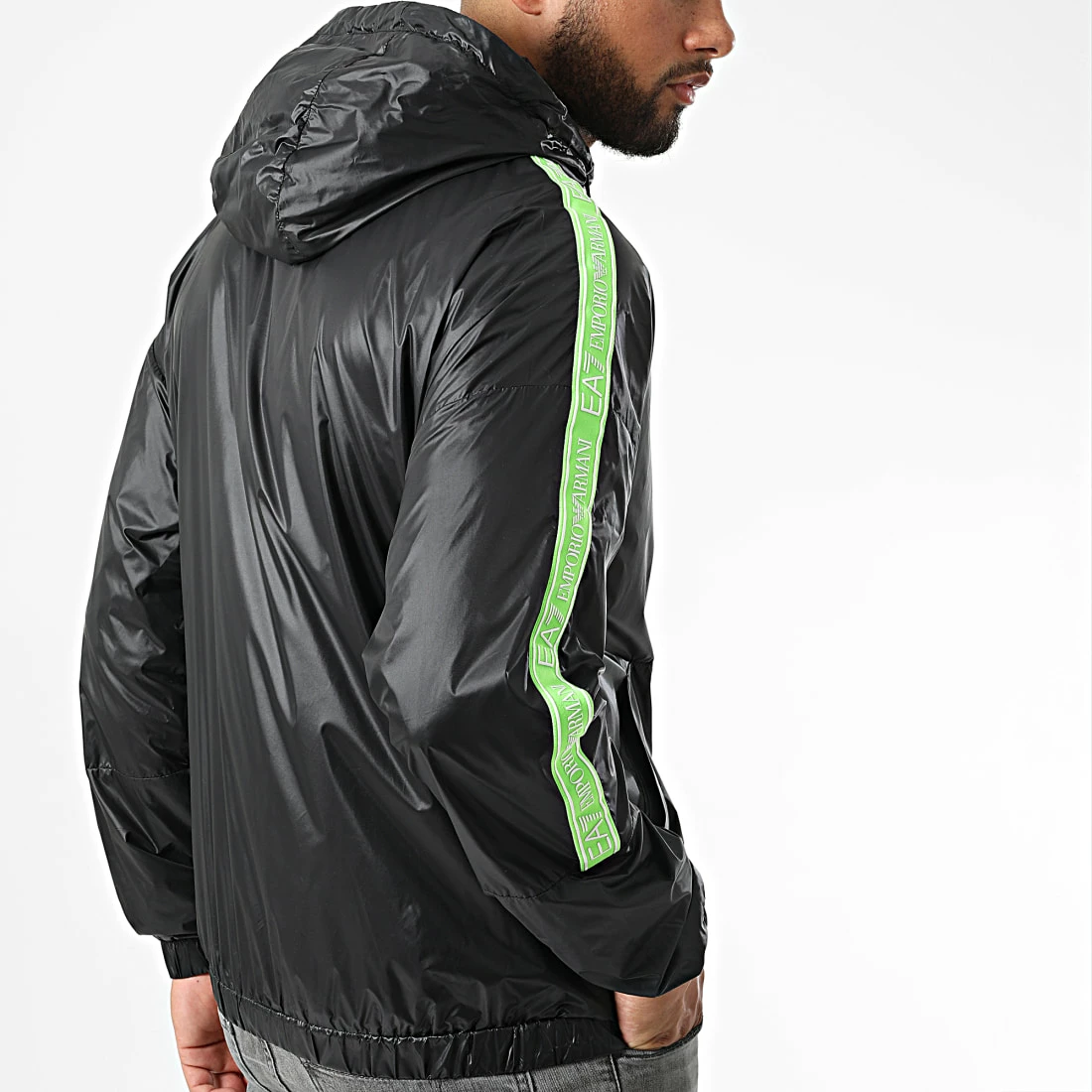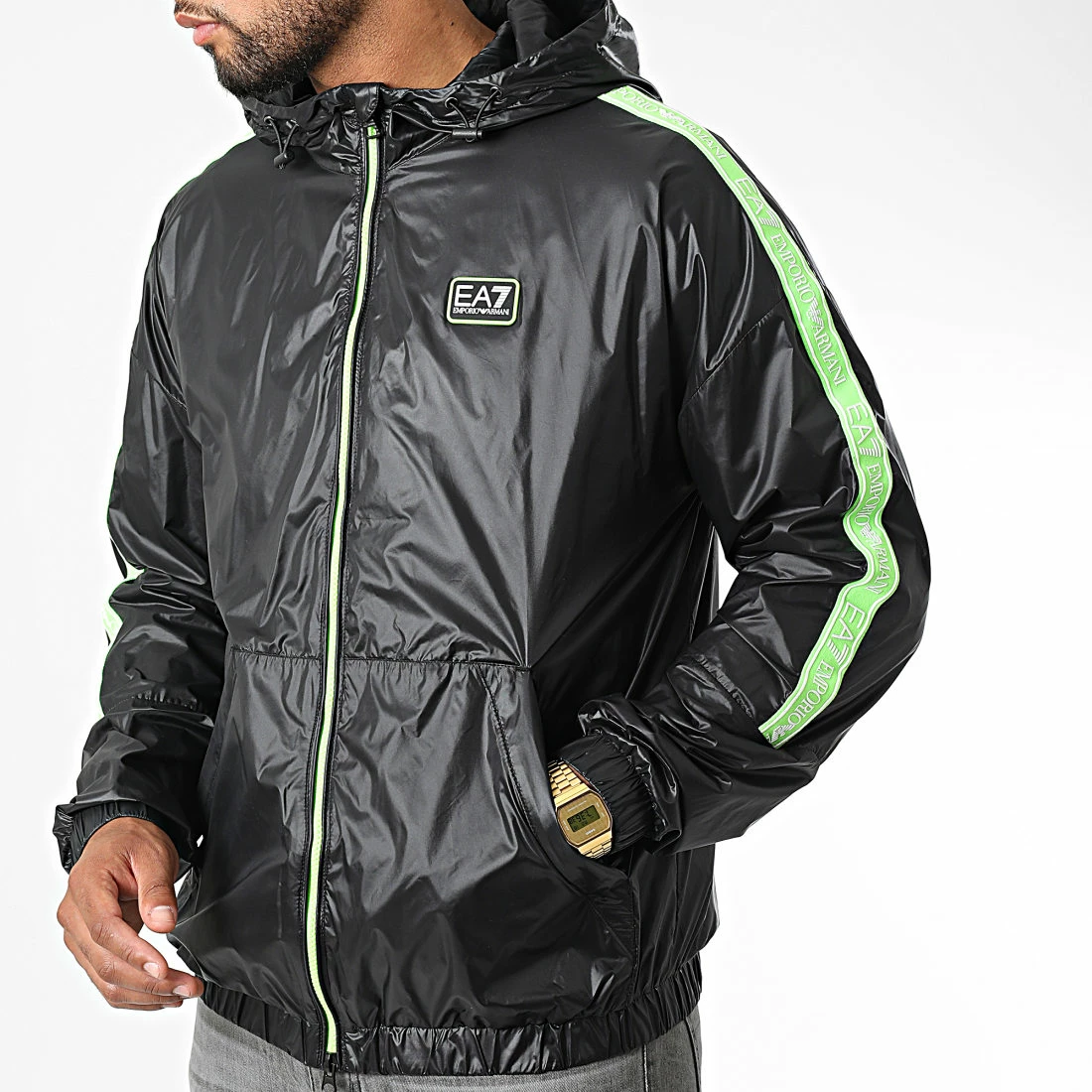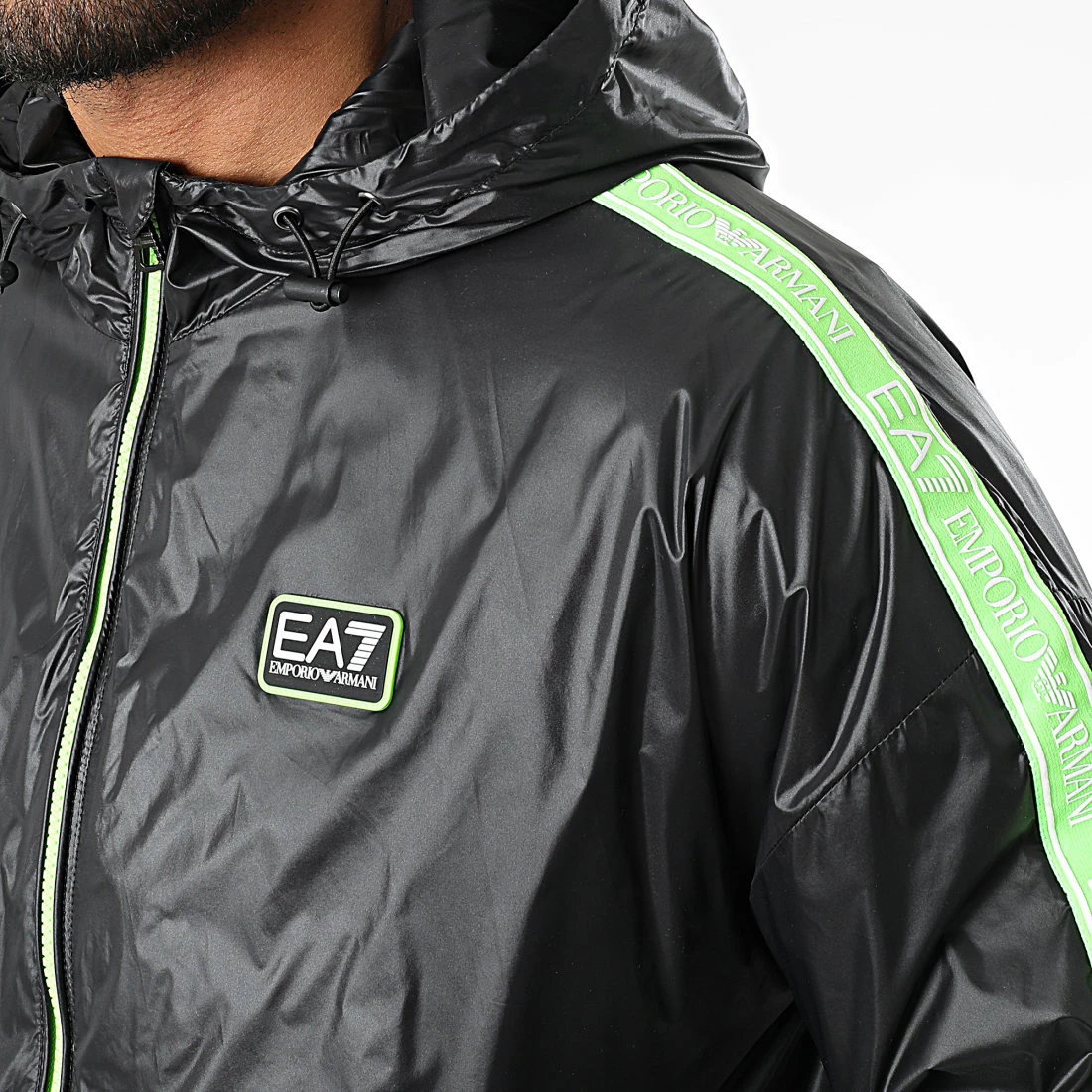 • Coupe-vent léger et fluide avec patch EA7 sur la poitrine et bande sur les manches