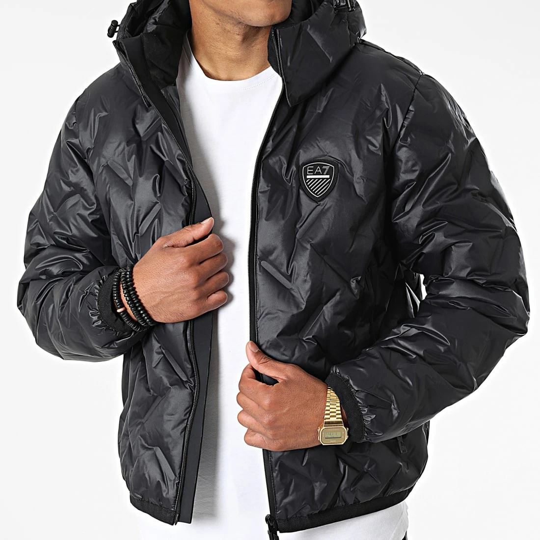 • Doudoune capuche chaude et tendance avec patch EA7 Emporio Armani brodé