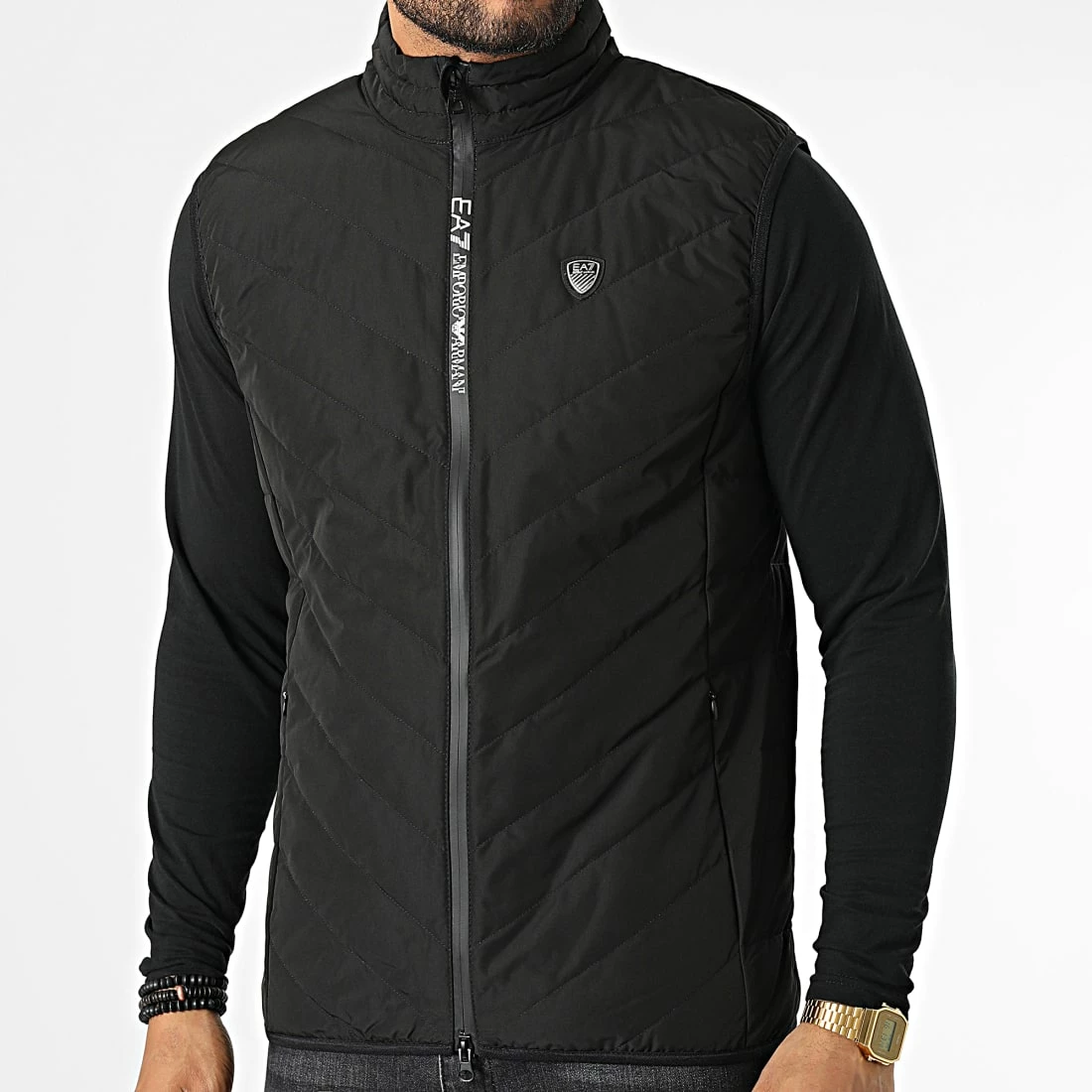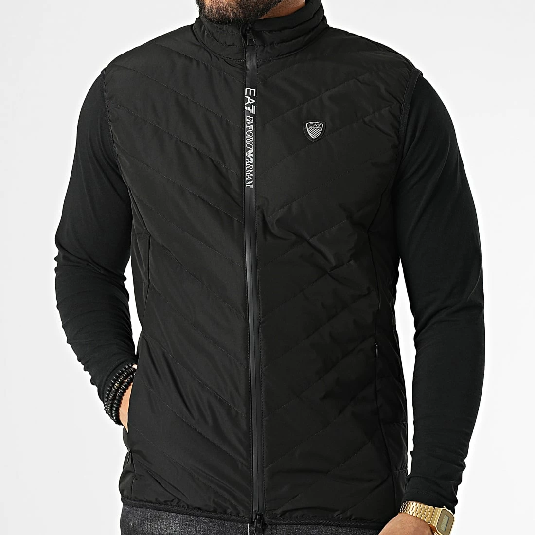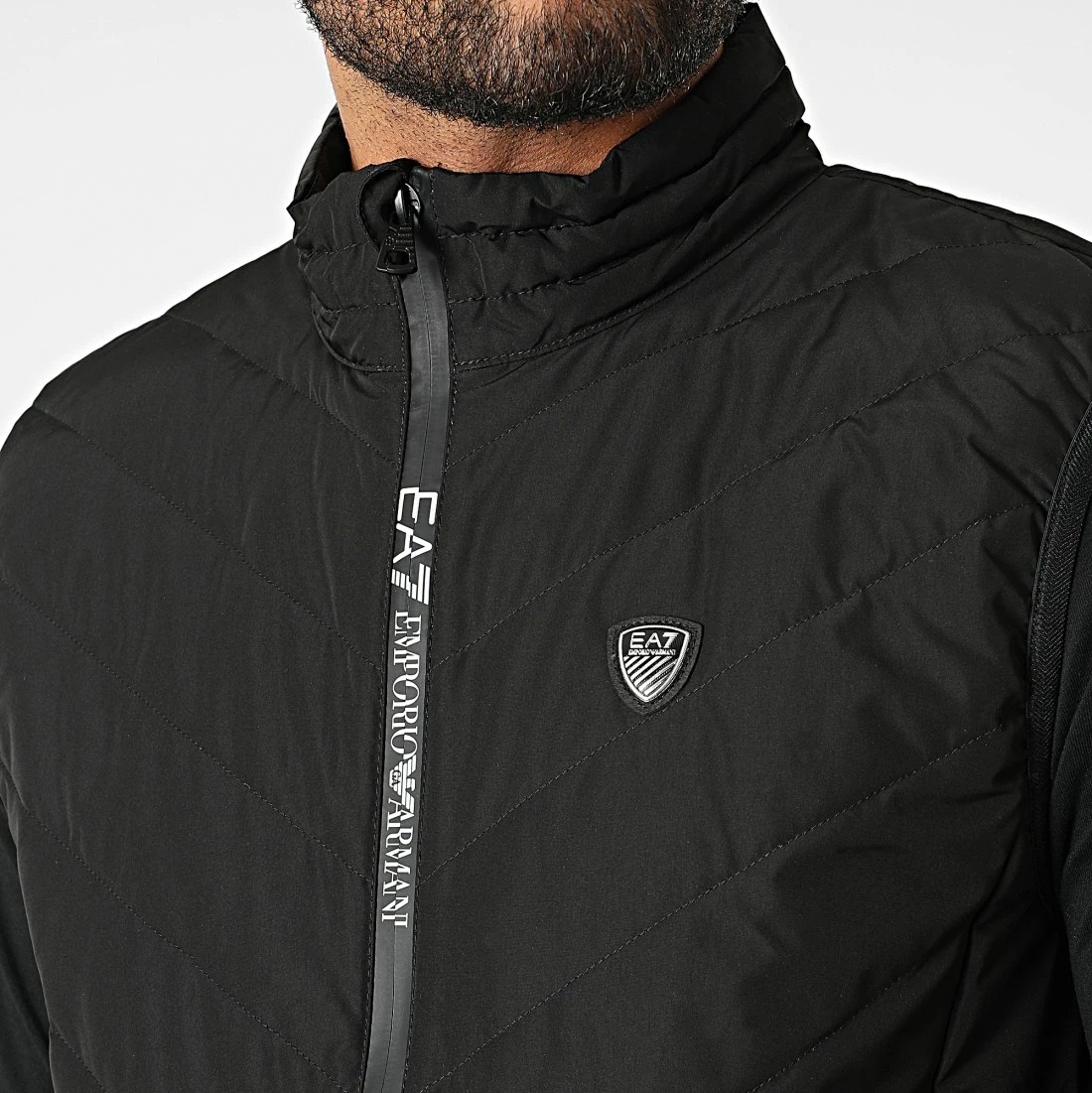 • Fermeture par zip métallique avec visuel EA7