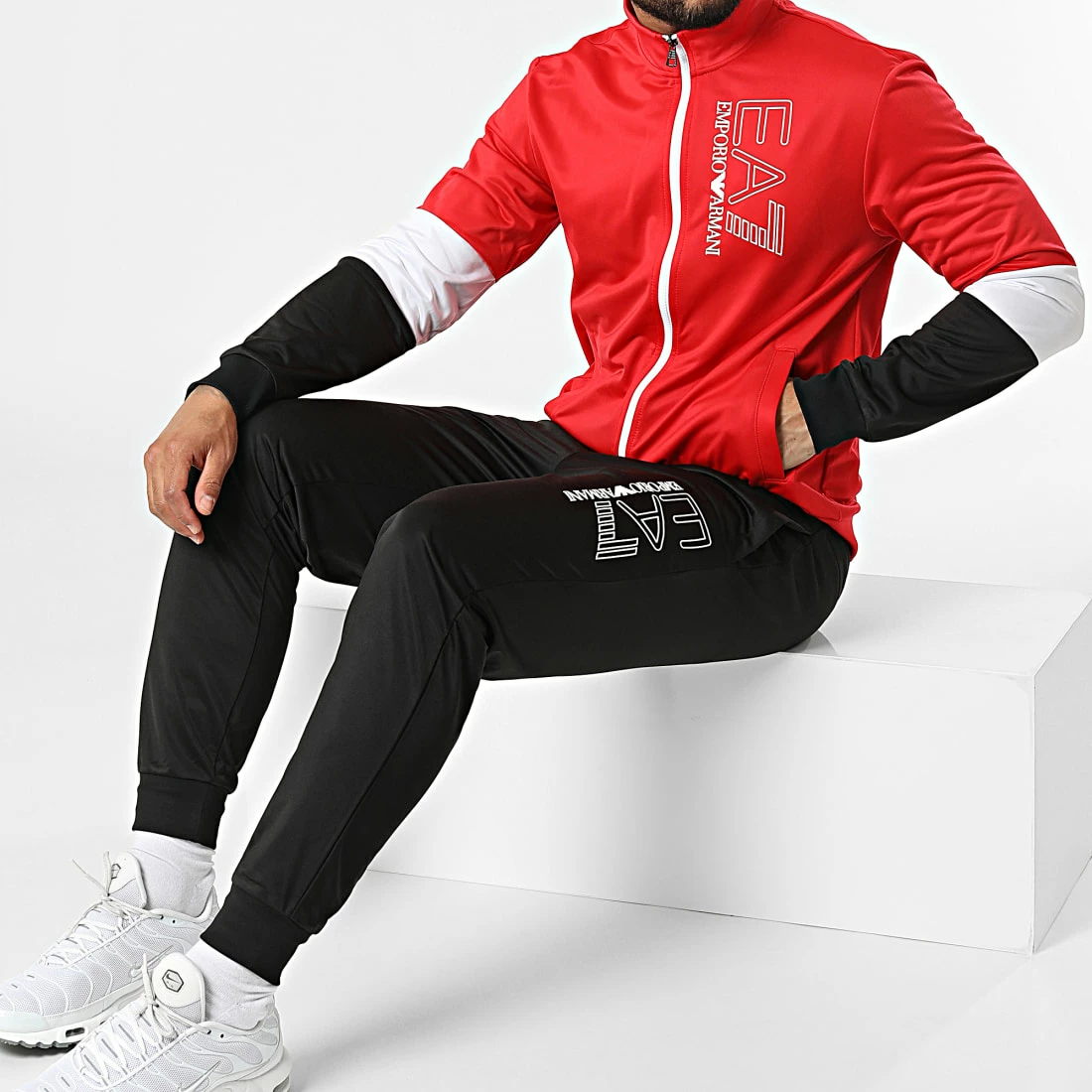 • Ensemble de survêtement tricolore tendance appliqué logo EA7 Emporio Armani en relief