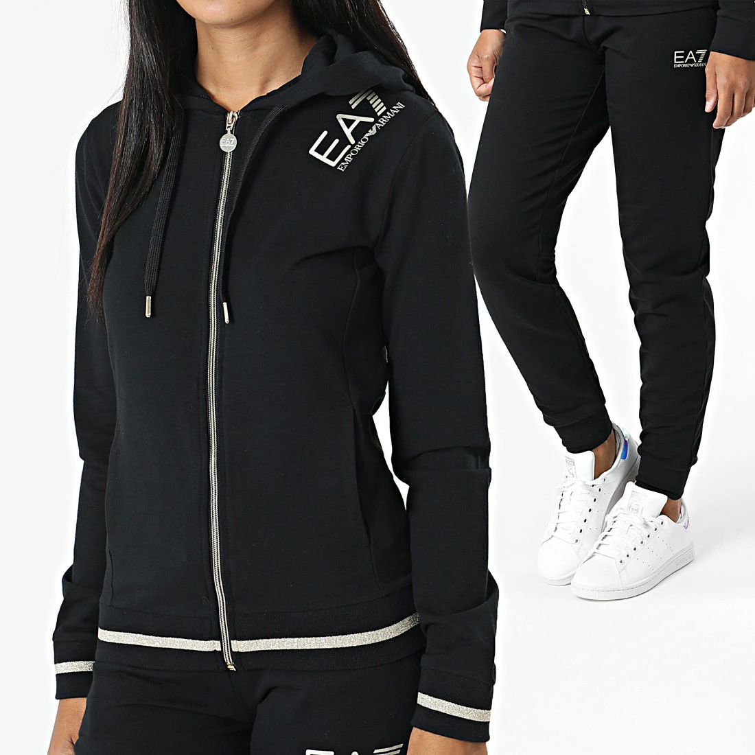 • Ensemble sweat capuche et pantalon jogging tendance avec logo EA7 Emporio Armani appliqué