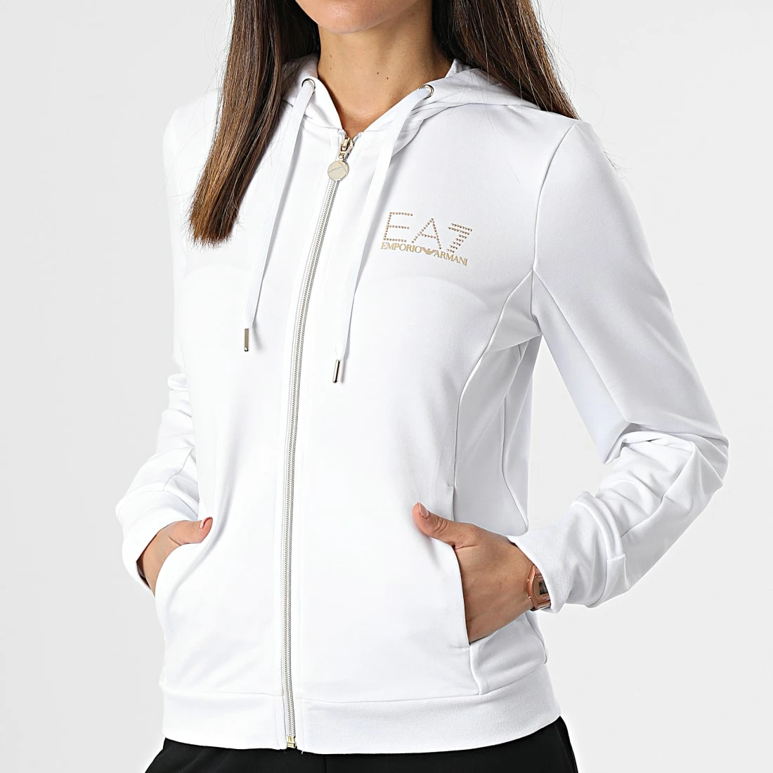 • Ensemble veste zippée et pantalon jogging tendance avec logo EA7 Emporio Armani imprimé et en sequins