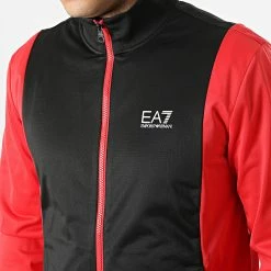 Tout neuf 🔥 Ensemble Veste Zippée Et Pantalon Jogging 3LPV63-PJ08Z Noir Rouge de EA7 Emporio Armani 💯