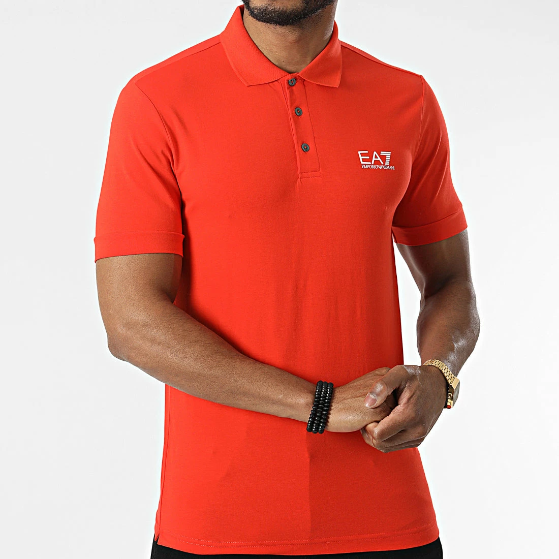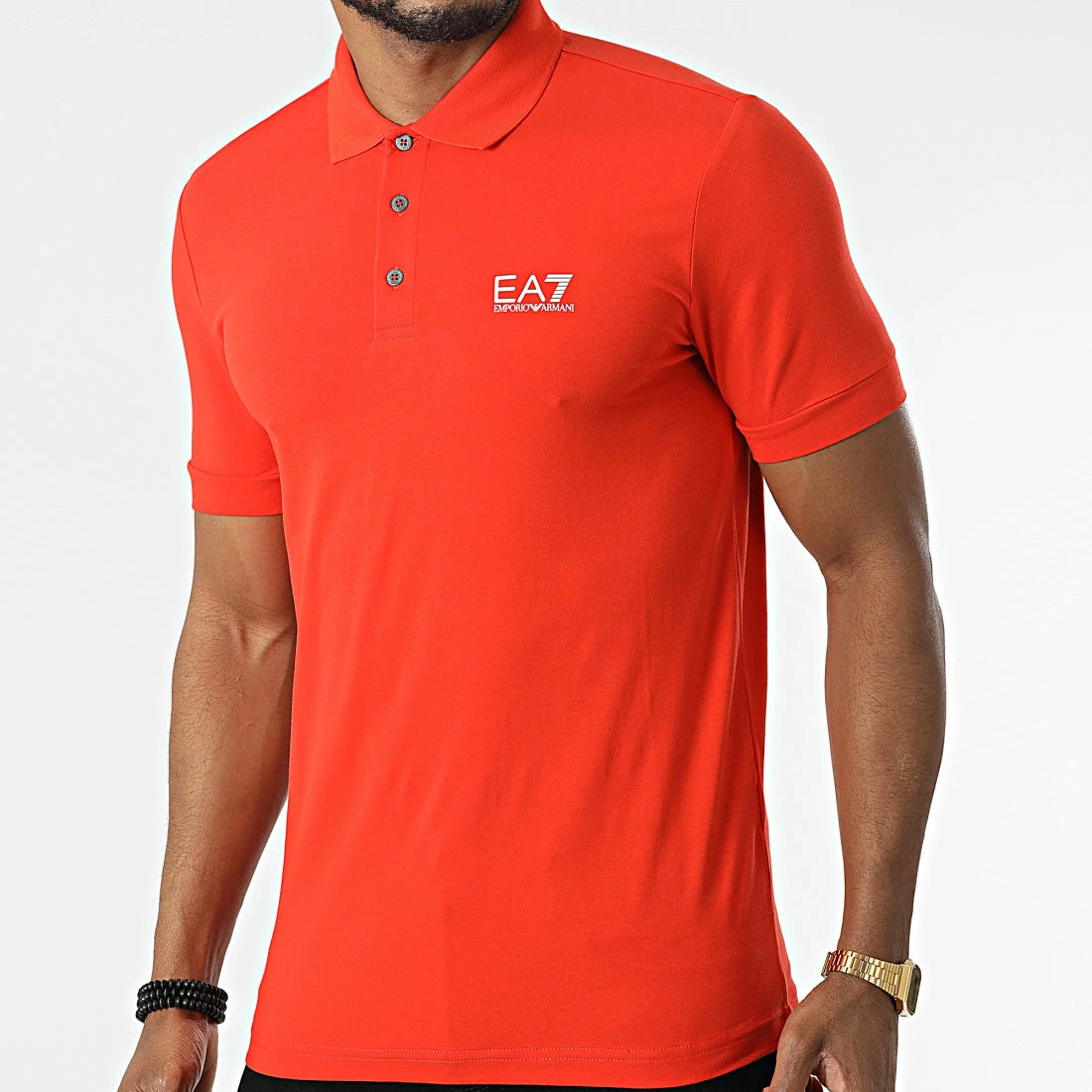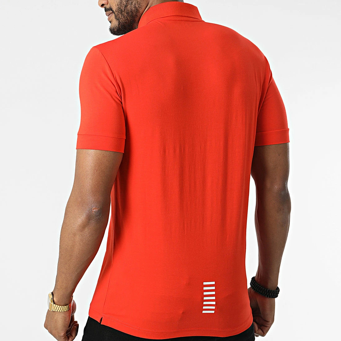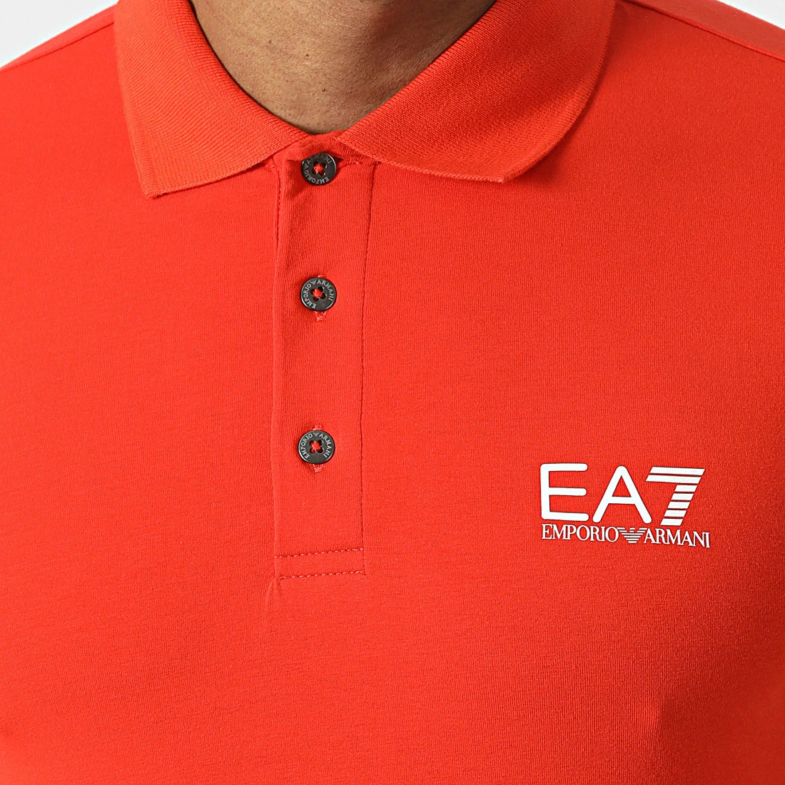 • Polo manches courtes tendance en coton stretch imprimé logo EA7 Emporio Armani sur la poitrine