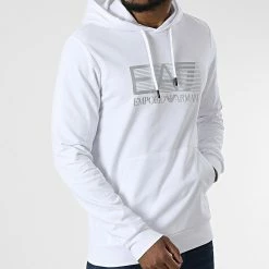 Bon marché 🔥 Sweat Capuche 6LPM62-PJ05Z Blanc Argenté de EA7 Emporio Armani 💯