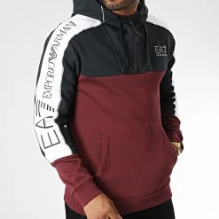 • Sweat capuche à bandes tendance avec logo EA7 Emporio Armani appliqué