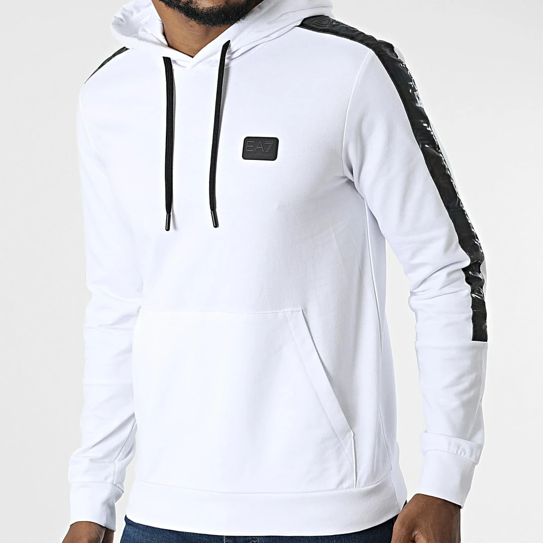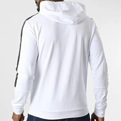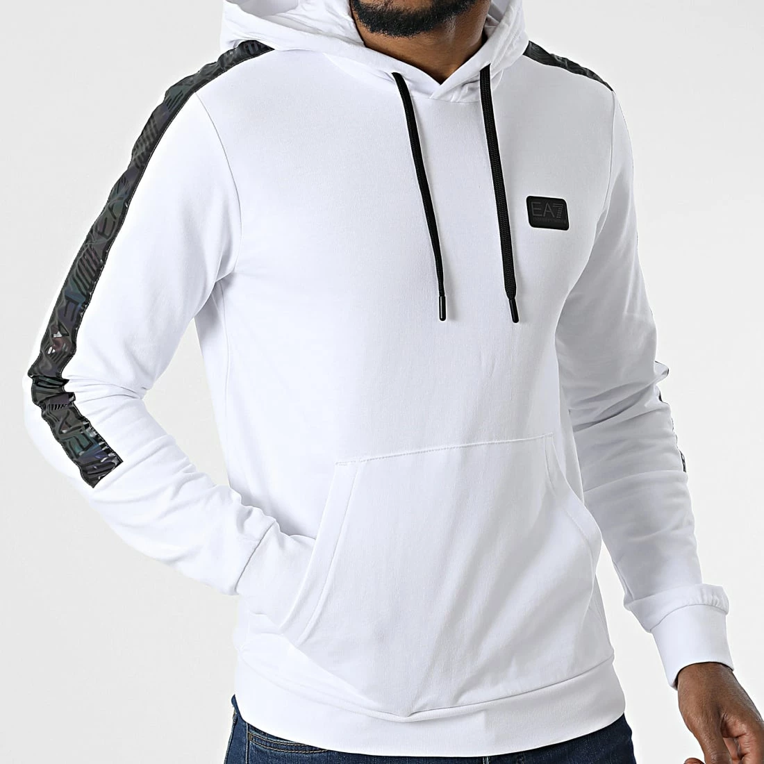 Meilleure vente 🔥 Sweat Capuche A Bandes 6LPM44-PJ05Z Blanc Réfléchissant Iridescent de EA7 Emporio Armani 🎁