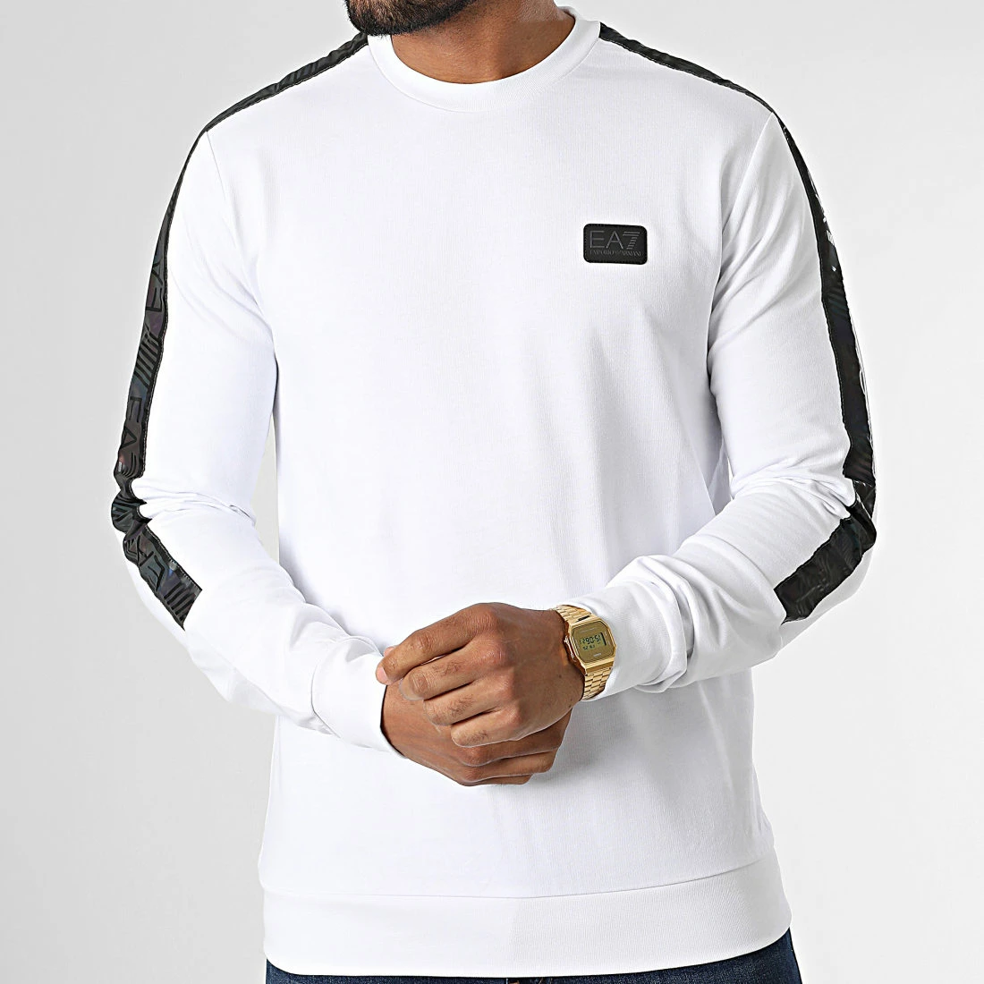 • Sweat crewneck tendance avec patch EA7 Emporio Armani réfléchissant et iridescent brodé