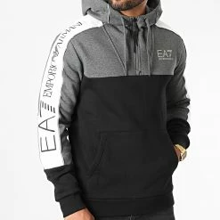 • Sweat zippé capuche tricolore tendance avec visuel EA7 Emporio Armani réfléchissant appliqué