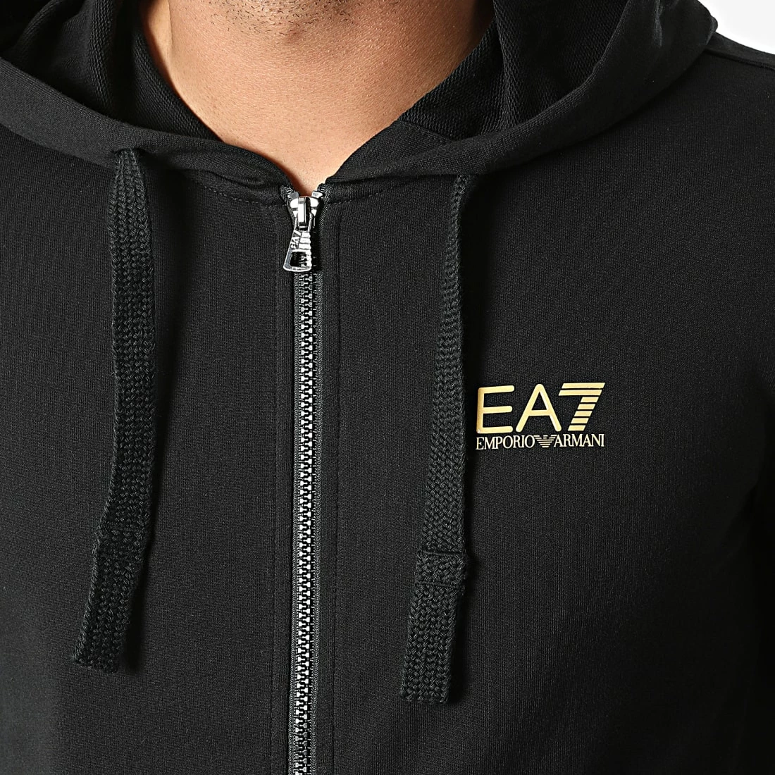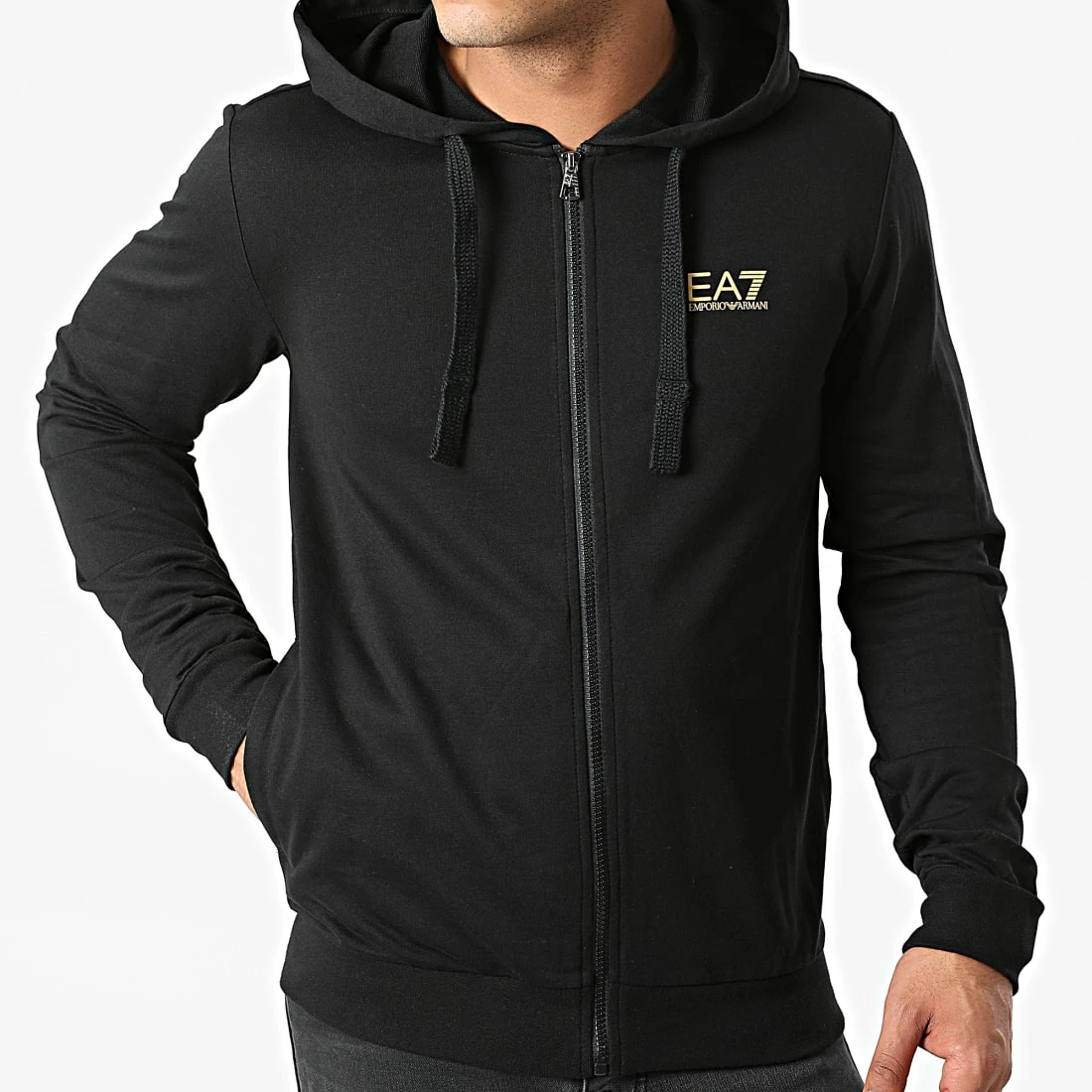 Nouveau ⌛ Sweat Zippé Capuche 8NPM03-PJ05Z Noir Doré de EA7 Emporio Armani ⭐