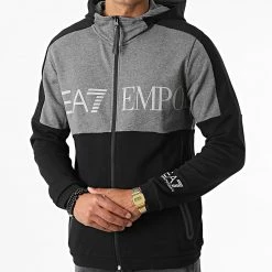 • Sweat zippé capuche imprimé visuel réfléchissant EA7 Emporio Armani sur l’avant et le poignet