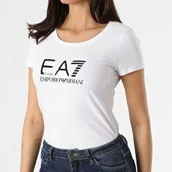 • Tee shirt en coton stretch imprimé visuel EA7 sur l’avant et le dos