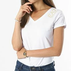 • Tee shirt en coton stretch imprimé visuel EA7 sur l’épaule